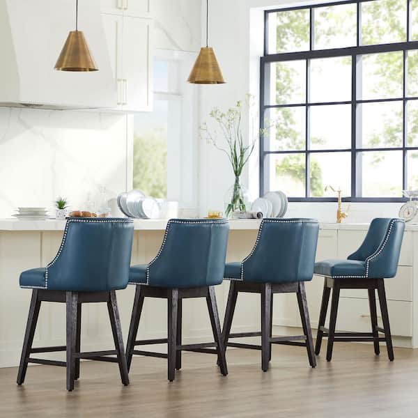 Martin 26 in. Blue High Back Solid Wood Frame Swivel Counter Height Bar Stool with Faux Leather Seat(Set of 3)