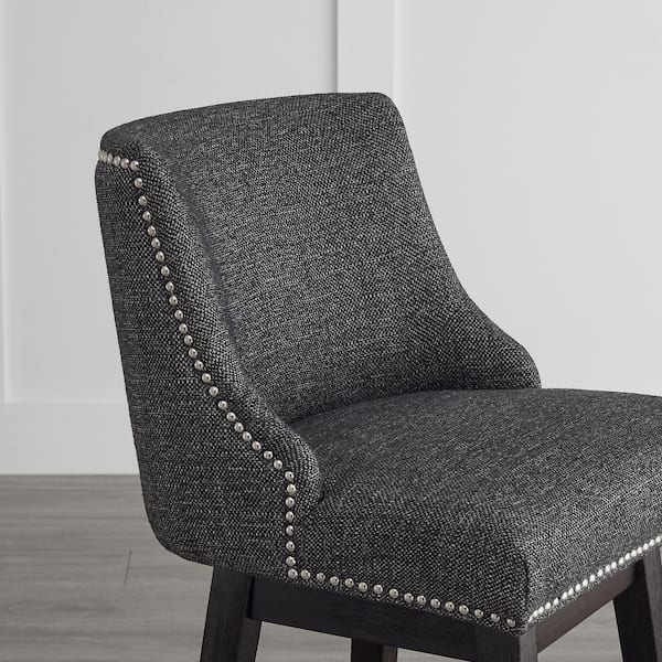 Martin 26 in. Charcoal Grey Solid Wood Frame Swivel Counter Height Bar Stool with Back and Fabric Seat (Set of 2)