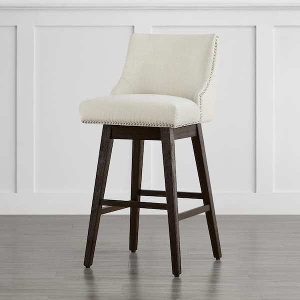 Martin 30 in. Beige Solid Wood Frame Swivel Counter Height Bar Stool with Back and Fabric Seat (Set of 2)