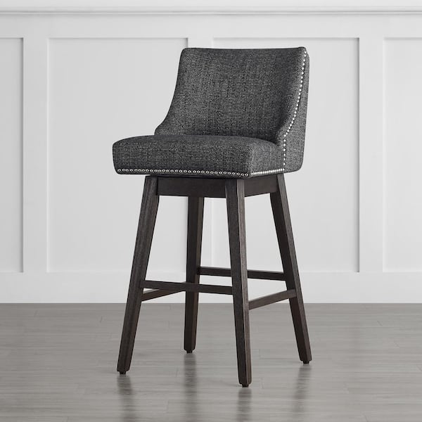 Martin 30 in. Charcoal Grey Solid Wood Frame Swivel Counter Height Bar Stool with Back and Fabric Seat (Set of 2)