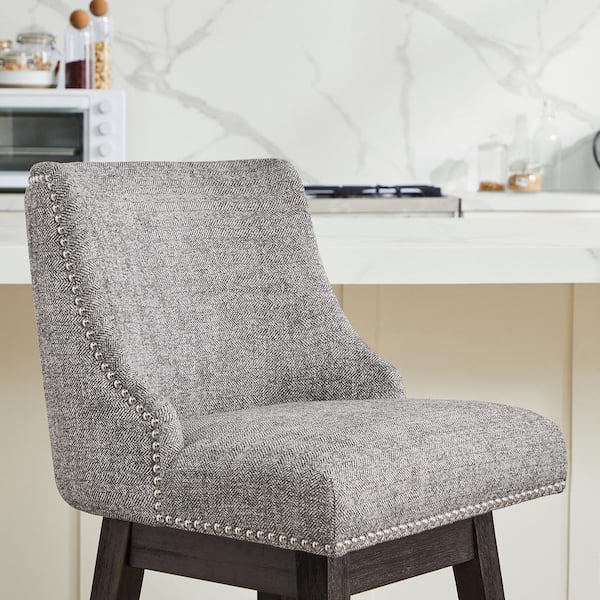 Martin 30 in. Pebble Gray High Back Solid Wood Frame Swivel Bar Stool with Faux Leather Seat(Set of 2)