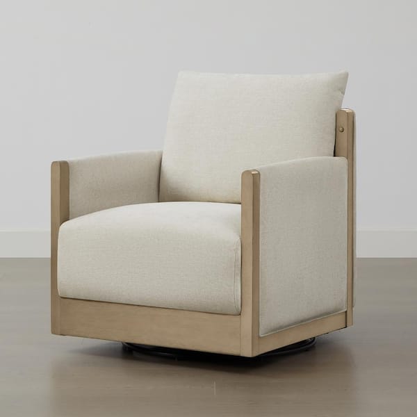 Milo Linen Modern Fabric Swivel Accent Chair with Grey Solid Wood Frame Armchair for Livingroom or Bedroom