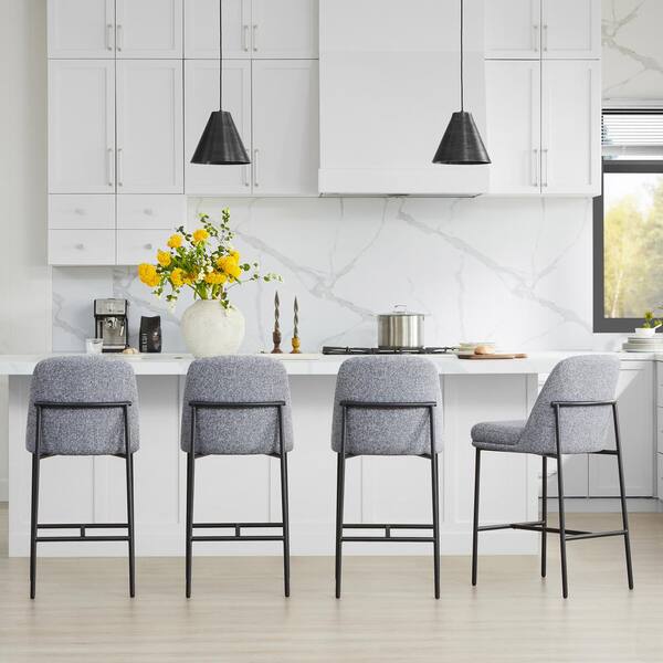 Monae 27 in. Gray Multi Color High Back Wood Counter Stool with Fabric Seat (Set of 2)