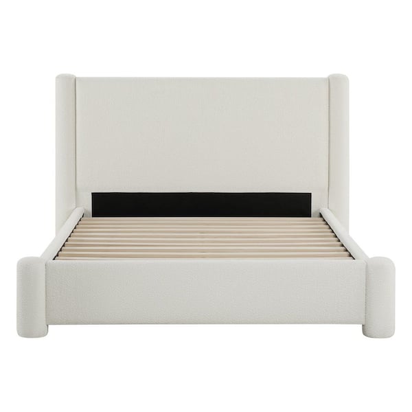 Nora White Rubberwood Frame Full Platform Bed with Waterproof Upholstered Headboard and EVA Foam for 8-10 in. Mattresses
