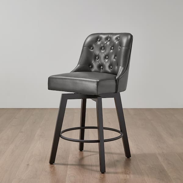 Percival 26 in. Stone Gray Wood Frame Leather Counter Height Swivel Bar Stools for Kitchen Room (Set of 2)