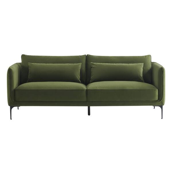 Petra 84 in. Mid Century Modern Green Velvet Sofa Upholstered Couch 3-Seat for Living Room