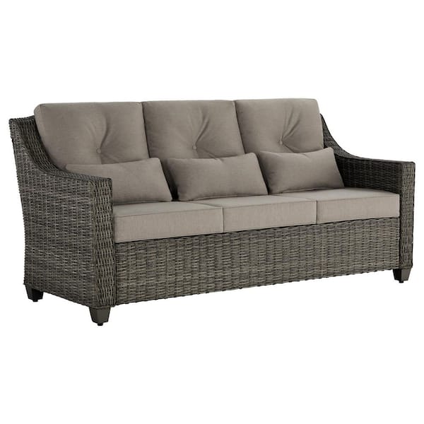 Thaddeus 74 in. Flared Arm Fabric Wicker Straight Oversized Rectangle 3-Seater Sofa Couch in Gray,Weather Resistant
