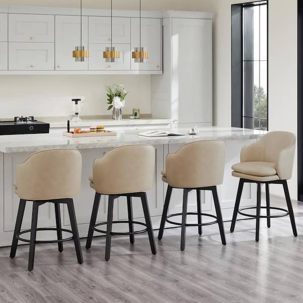 Zephyrine 26 in. Beige Low Back Swivel Counter Height Bar Stool with Leather Seat and Wood Frame (Set of 2)