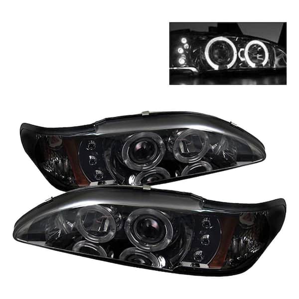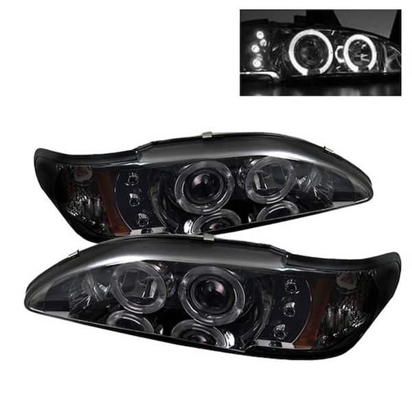 Ford Mustang 94-98 1PC Projector Headlights - LED Halo - Amber Reflector - Smoke