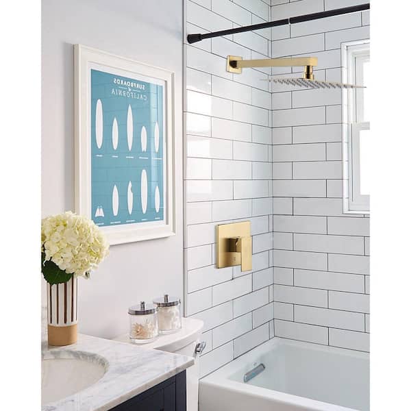 Square 1-Spray Patterns with 1.6 GPM 8 in. Wall Mount Rain Fixed Shower Head in Brushed Gold
