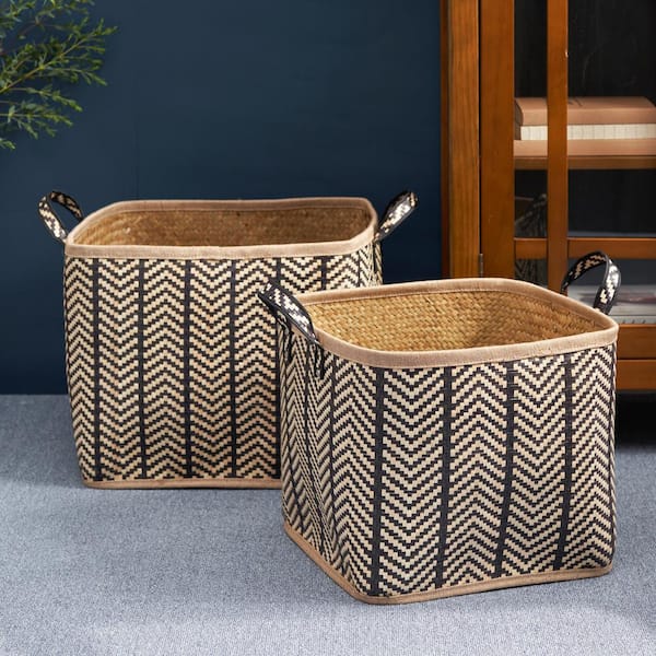 Square Brown 16 in. x 17 in. Wicker Decorative Basket Storage Set of 2 With Handle for Clothes, Book Storage, Home Decor