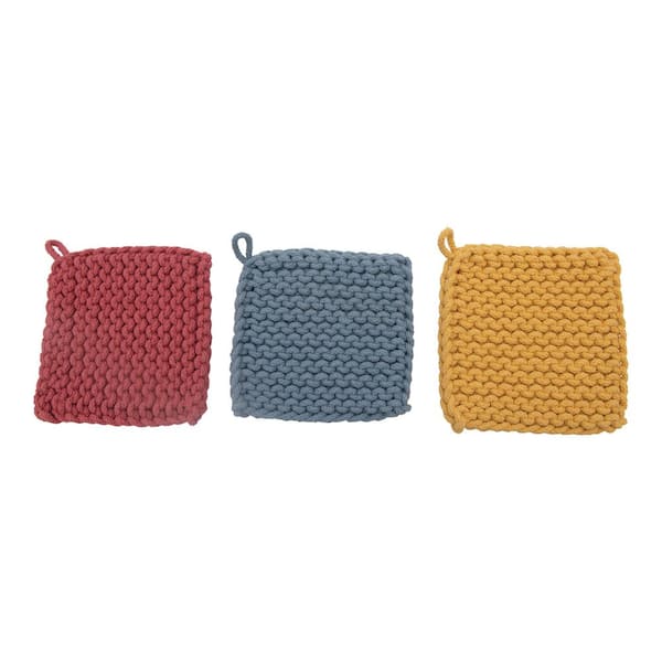 Square Crochet Cotton Multicolored Potholders, (3-Pack)