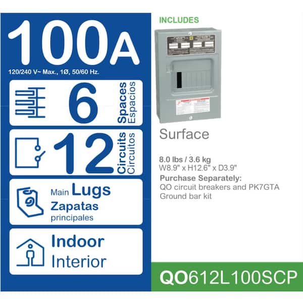QO 100 Amp 6-Space 12-Circuit Indoor Main Lug Load Center with Surface Mount Cover