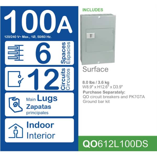 QO 100 Amp 6-Space 12-Circuit Indoor Main Lug Load Center with Surface Mount Cover with Door