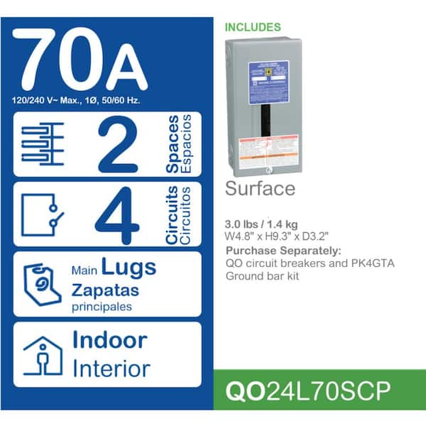 QO 70 Amp 2-Space 4-Circuit Indoor Main Lug Load Center with Surface Mount Cover