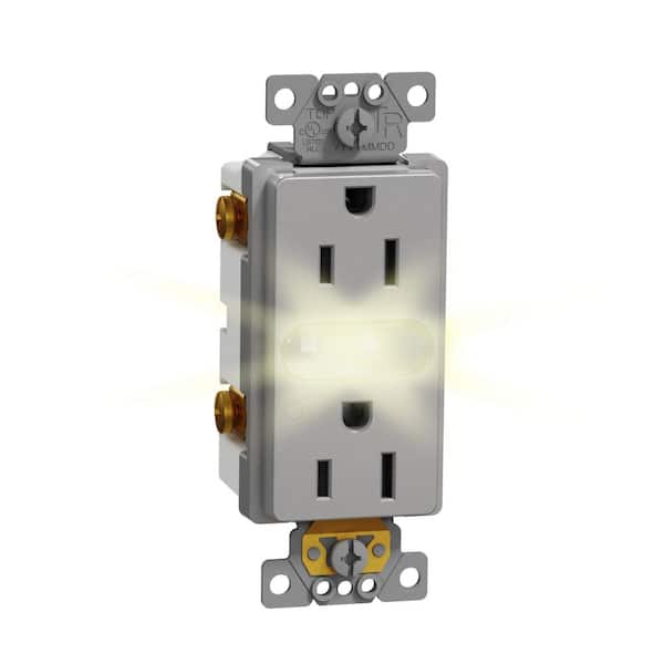 X Series 15 Amp 125-Volt Tamper Resistant Indoor Lighted Duplex Outlet Back Wire Decorator Receptacle Matte Gray