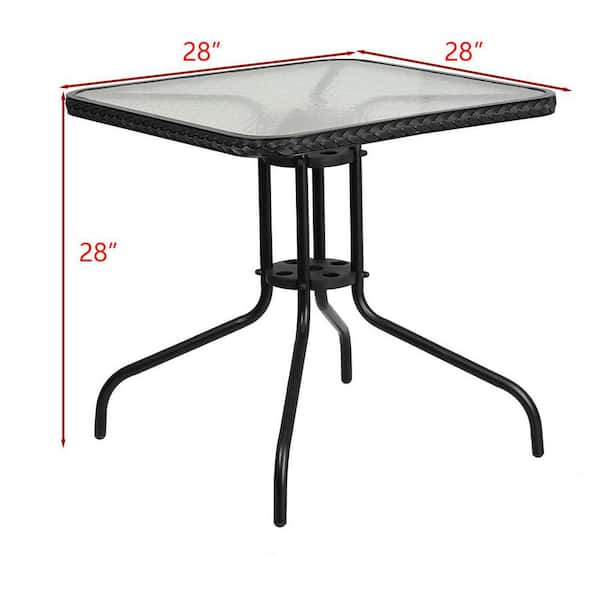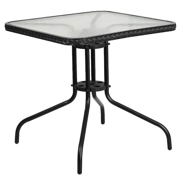 Square Metal Outdoor Dining Table with Black Rattan Edging