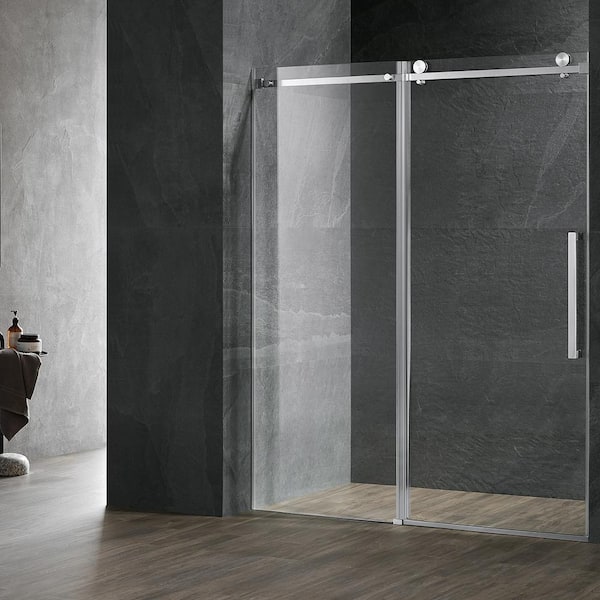Square Rail 64 in. W - 68 in. W x 74 in. H Sliding Frameless Shower Door in Brushed Nickel with Easy Cleaning Glass