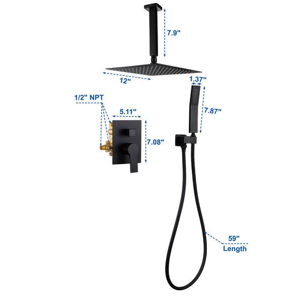Square Shower Ceiling Mount Hand Fixed and Dual Handheld Shower Head Wall Mount Flow rate 1.8 GPM in Matte Black