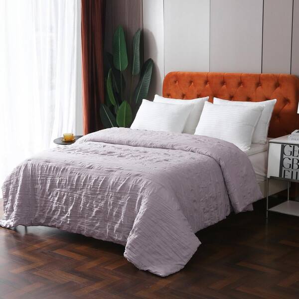 Crinkled Down Alternative Light Purple Polyester Twin Blanket
