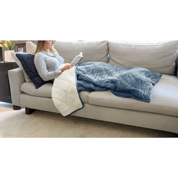 Quilted Velvet and Sherpa Blue Fog Polyester Foot Pocket Throw Blanket