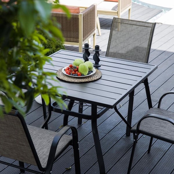 Stackable Patio Dining Chairs (Set of 4) Textilene Iron Patio Chairs Patio Dining Chairs Lawn, Poolside, Garden, Brown