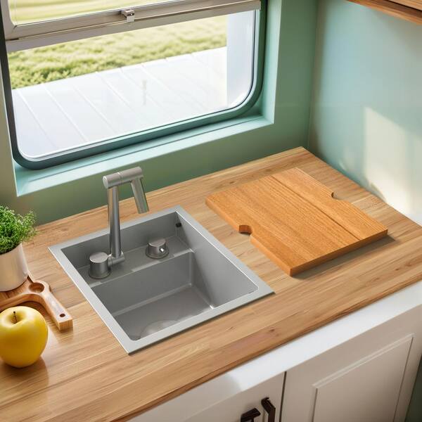 Stainless Steel 13 in. Undermount Bar Sink with Adjustable Faucet and Cutting Board