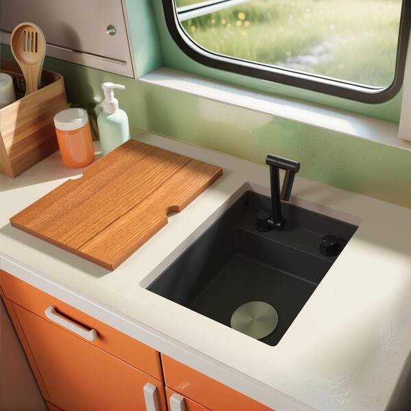 Stainless Steel 15 in. Undermount Bar Sink with Adjustable Faucet and Cutting Board in Black