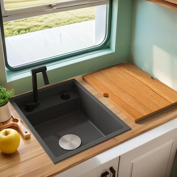 Stainless Steel 16 in. Undermount Bar Sink with Adjustable Faucet and Cutting Board in Black