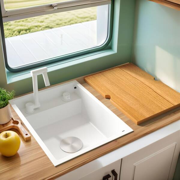 Stainless Steel 16 in. Undermount Bar Sink with Adjustable Faucet and Cutting Board in White