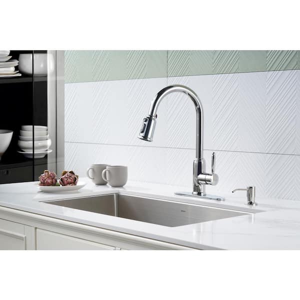 Stainless Steel Single-Handle Pull Down Sprayer Kitchen Faucet with Soap Dispenser in Chrome