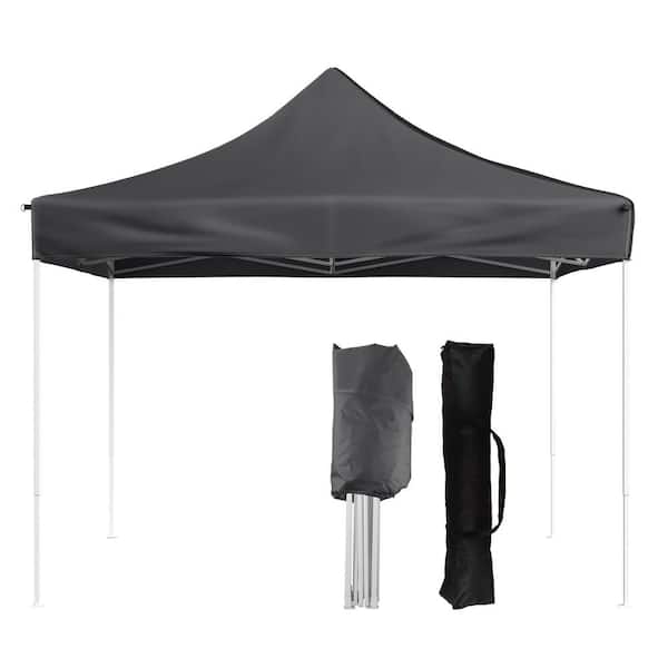 10 ft. x 10 ft. Gray Pop Up Canopy Tent - UPF30 Beach Tent Sun Shelter - Adjustable Height EZ Up Canopy with Bag