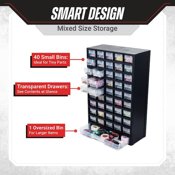 17.5 in. 41-Compartment Hardware Storage Small Parts Organizer in Black