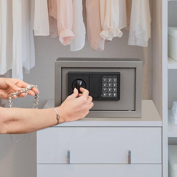 Digital Safe Box - Steel Lock Box with Keypad, 2 Manual Override - for Home or Office (Beige)