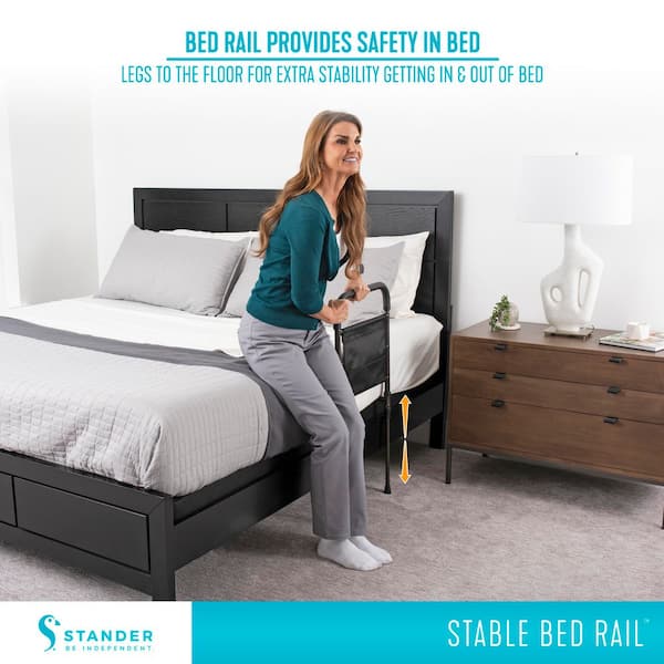 19 in. Stable Bed Rail with Adjustable Support Legs and Organizer Pouch in Brown