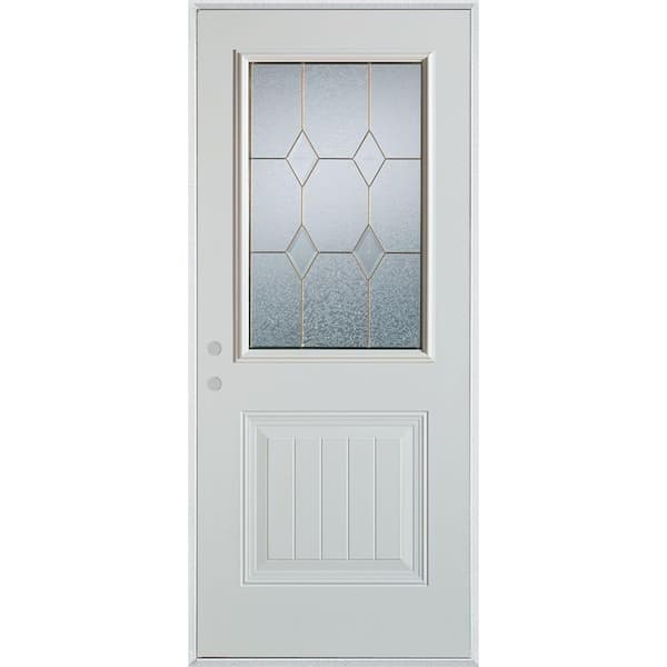 32 in. x 80 in. Geometric Zinc 1/2 Lite 1-Panel Painted White Right-Hand Inswing Steel Prehung Front Door