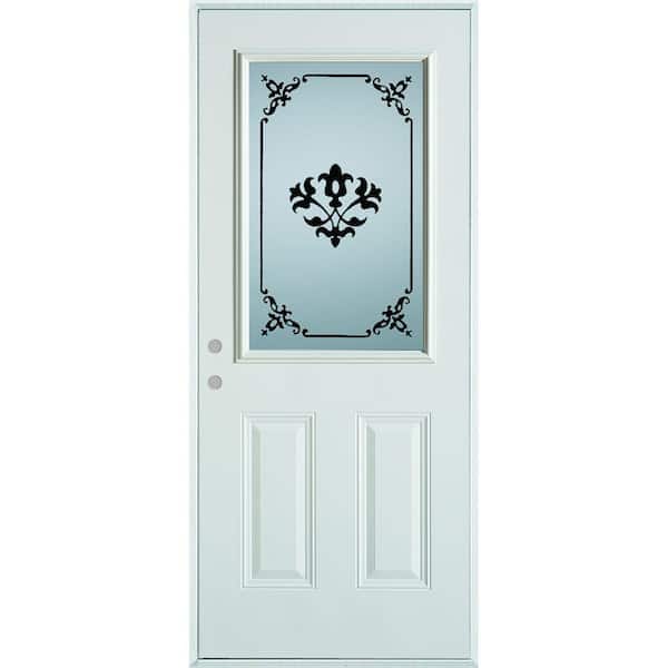32 in. x 80 in. Silkscreened Glass 1/2 Lite 2-Panel Painted White Steel Prehung Front Door
