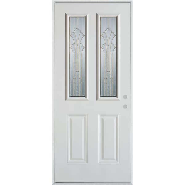 36 in. x 80 in. Art Deco 2 Lite 2-Panel Painted White Left-Hand Inswing Steel Prehung Front Door