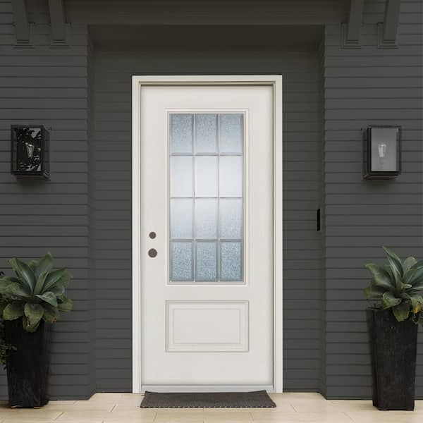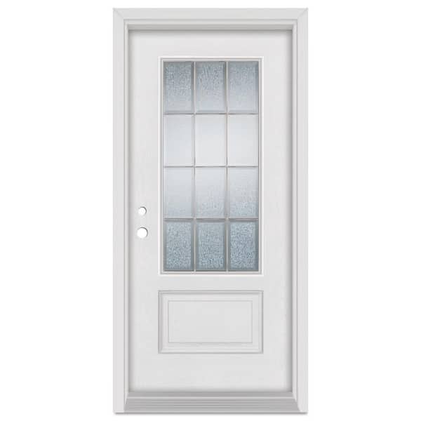 36 in. x 80 in. Geometric Right-Hand Brass Finished Fiberglass Mahogany Woodgrain Prehung Front Door