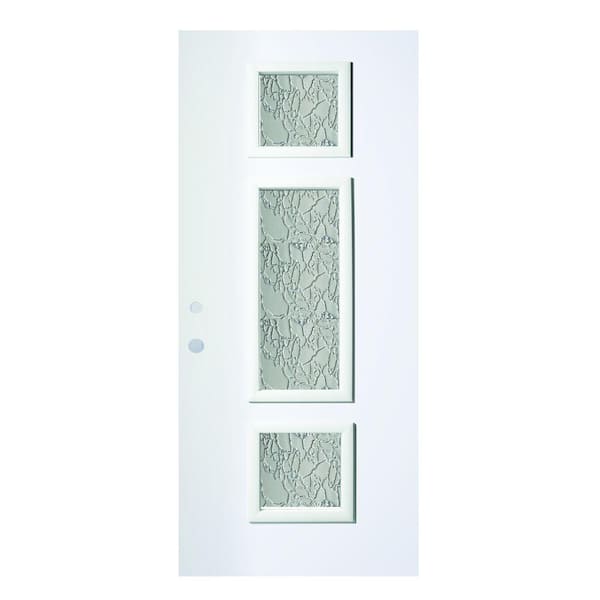 36 in. x 80 in. Marjorie Delta Satin 3 Lite Painted White Right-Hand Inswing Steel Prehung Front Door
