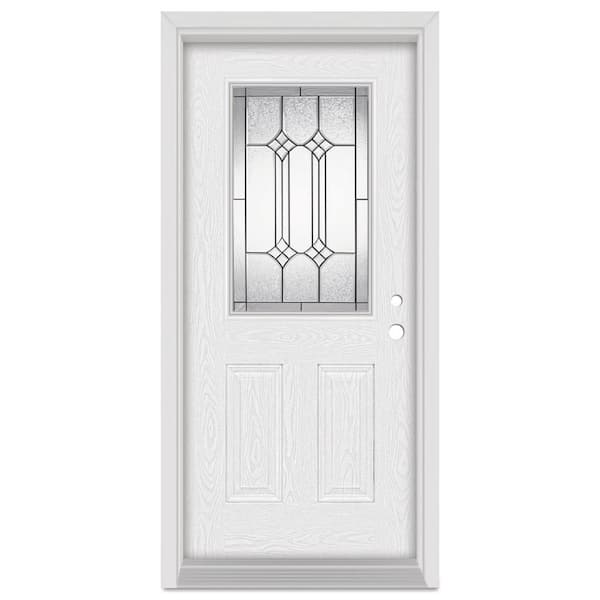 36 in. x 80 in. Orleans Left-Hand 1/2 Lite Patina Finished Fiberglass Oak Woodgrain Prehung Front Door