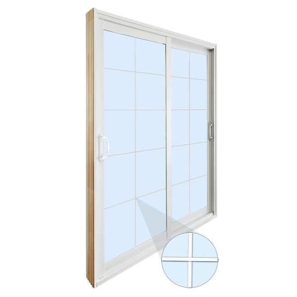 60 in. x 80 in. Double Sliding Patio Door with 10-Lite Internal White Flat Grill
