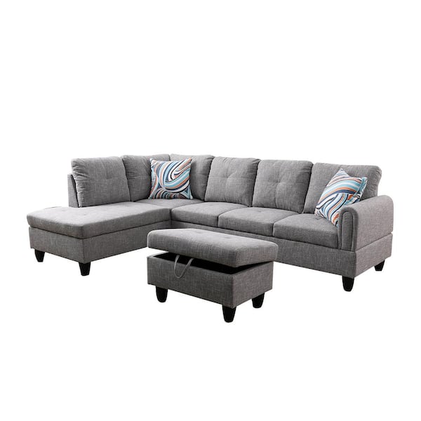 25 in. Round Arm 3-Piece Microfiber L-Shaped Sectional Sofa in Space Gray