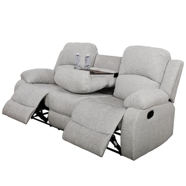 Cindy 82 in. Round Arm Linen Rectangle Reclining Sofa in light Gray