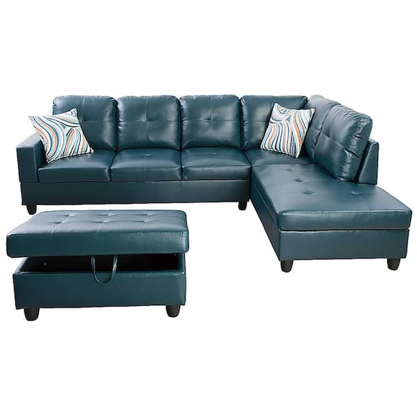 Living-3-Piece-Blue-Faux Leather-6 Seats-L-Shaped-Left Facing-Sectionals