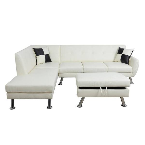Ricky 3-Piece Off-White Faux Leather 3-Seater L-Shaped Left-Facing Sectional Sofa with Ottoman