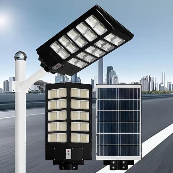 1-Light Black Metal Solar Outdoor Waterproof Motion Sensing Dusk-to-Dawn Post Light with Remote, Integrated LED