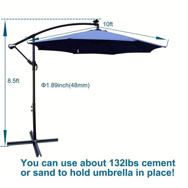 10 ft. Steel Cantilever Market Solar-Powered LED Patio Umbrella in Navy Blue with Crank Lift and Cross Base