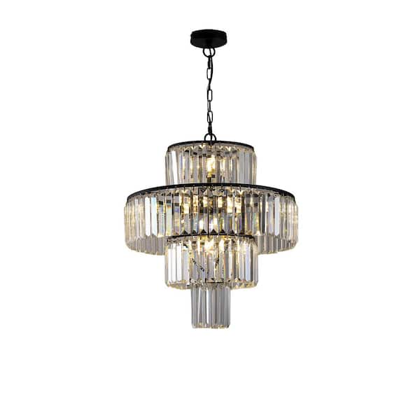 12 Light Black Luxury Crystal Chandelier for Dining Room Bedroom Living Room with No Bulbs Included