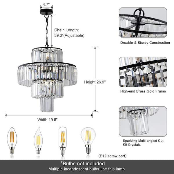 • Requires 12*E12 base bulbs, with an average of 60-Watt